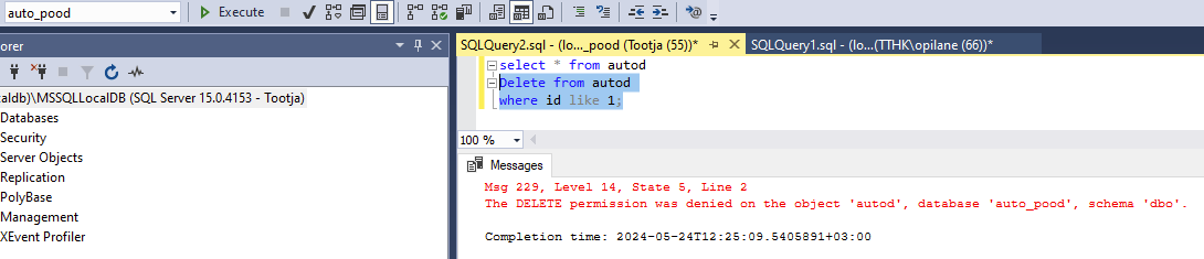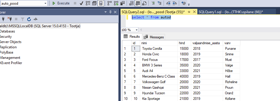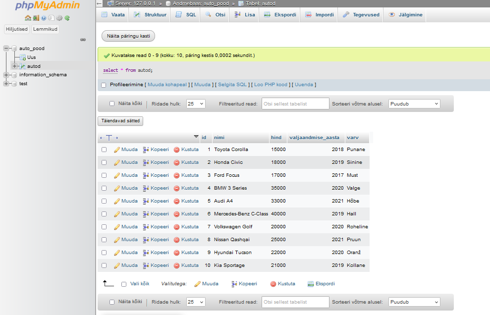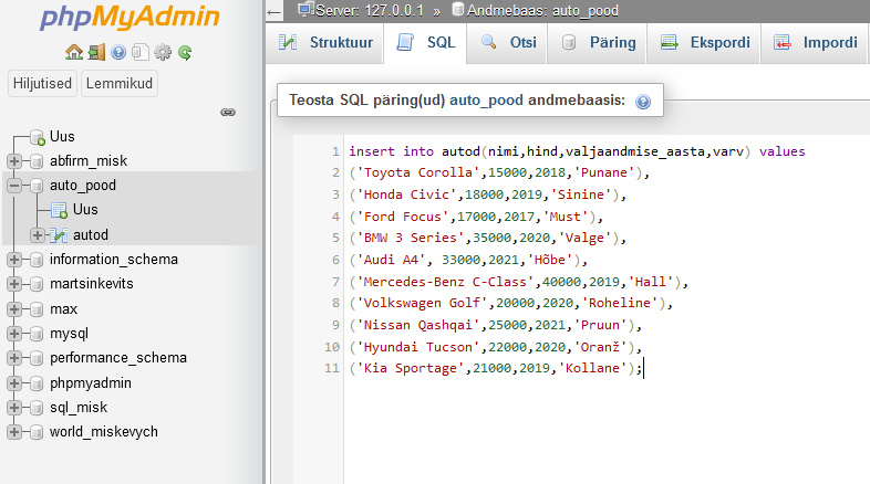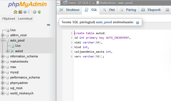 Andmebaasi loomine (auto_pood)