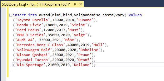 Update autod set varv = 'Sinine' where id like 1;
