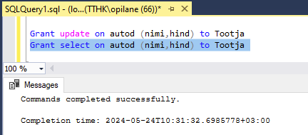 Õiguste andmine kasutajale
