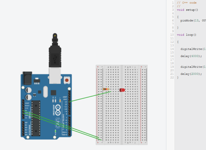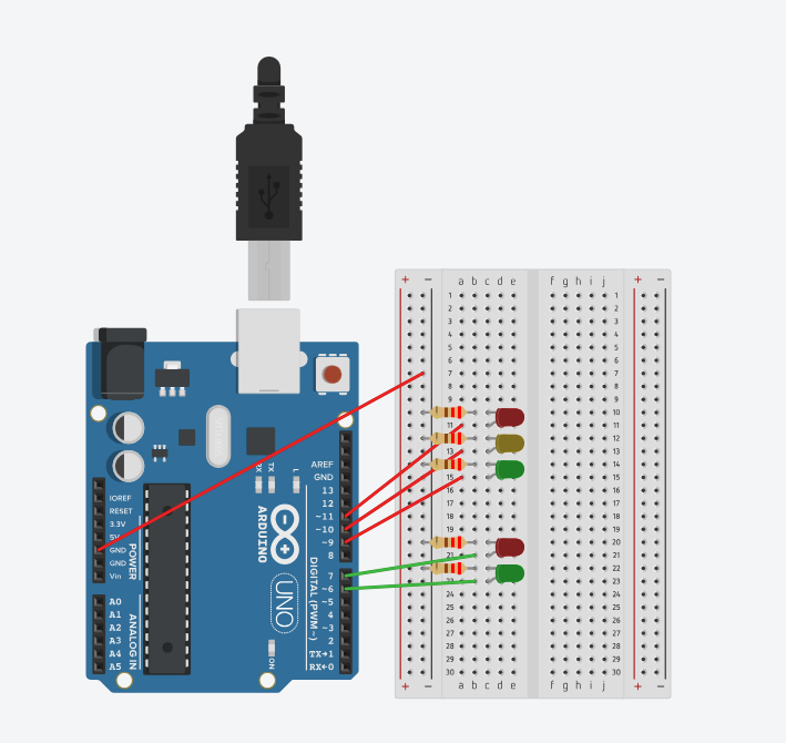 Koodi alguses panen igale LED-ile erineva väärtuse, mis vastab arduino uno viigule.