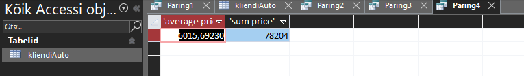 SELECT AVG(car_price) AS 'average price', sum(car_price) AS 'sum price'