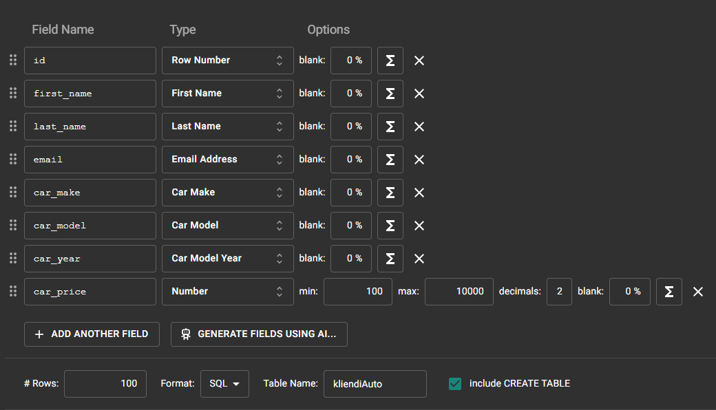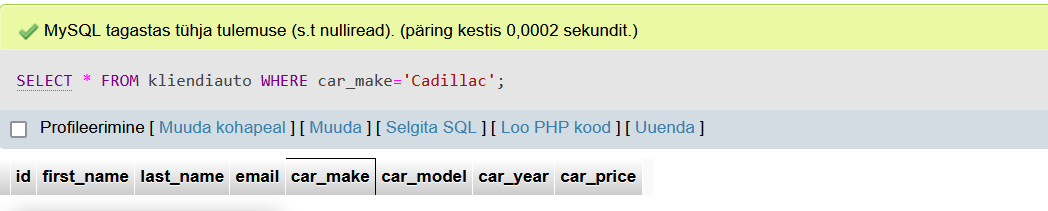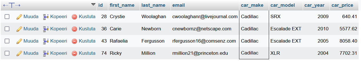 insert into kliendiAuto (id, first_name, last_name, email, car_make, car_model, car_year, car_price) values (14, 'test', 'test', 'test@gmail.com', 'Cadillac', 'test', 2024, 9999);