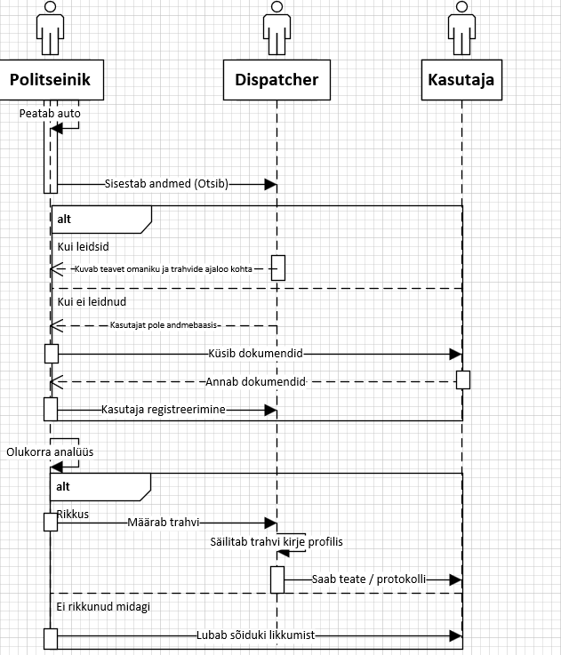 - Osapooled (Actors): Kasutajad või välised süsteemid, kes algatavad interaktsiooni.