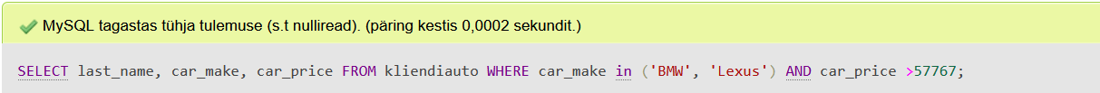 WHERE car_make in ('BMW','Lexus') and car_price > 57767;