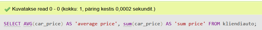 SELECT AVG(car_price) AS 'average price', sum(car_price) AS 'sum price'