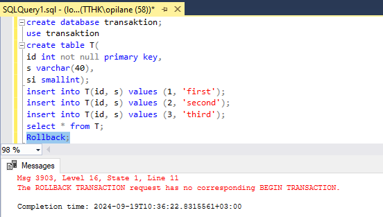 on võimatu ROLLBACK ilma tehingut alustamata.