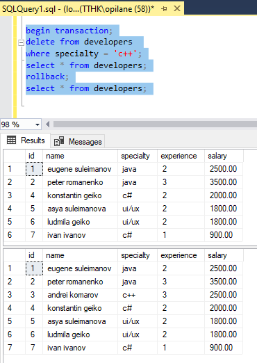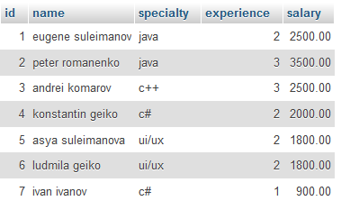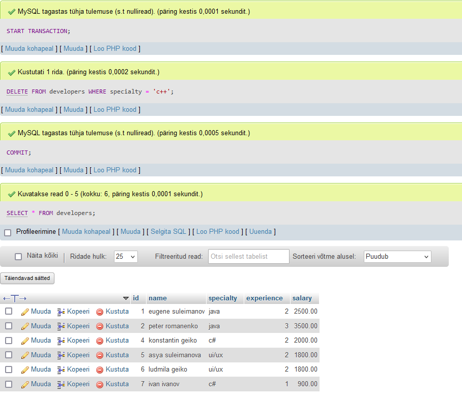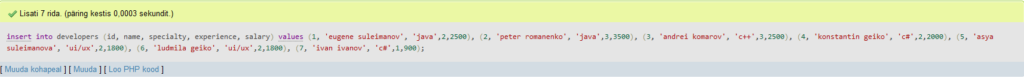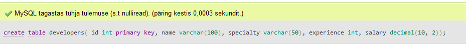 Looge tabel DEVELOPERS ja lisage sinna andmed.